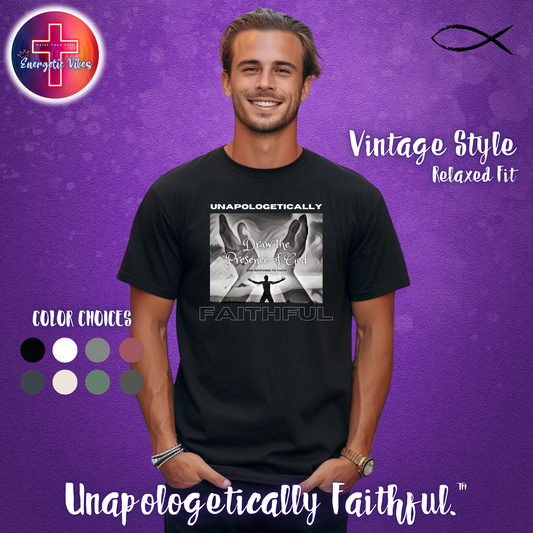 Draw the Presence of God ~ Monochrome Unisex Christian T-Shirt | Vintage Style Relaxed Tee