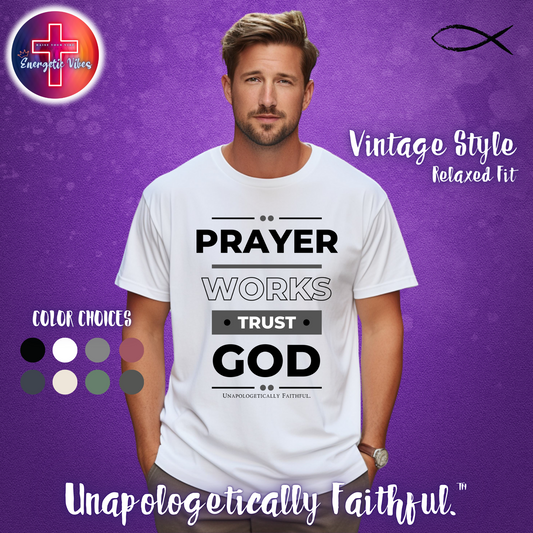 Prayer Works, Trust God: Unisex Christian T-Shirt | Vintage Style Relaxed Tee