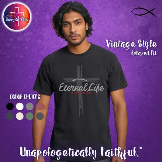 John 3:16 Eternal Life Is Up Ahead Unisex Christian T-Shirt | Vintage Style Relaxed Tee