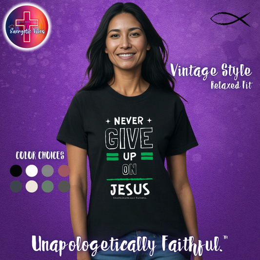 Never Give Up on Jesus Unisex Christian T-Shirt | Vintage Style Relaxed Tee