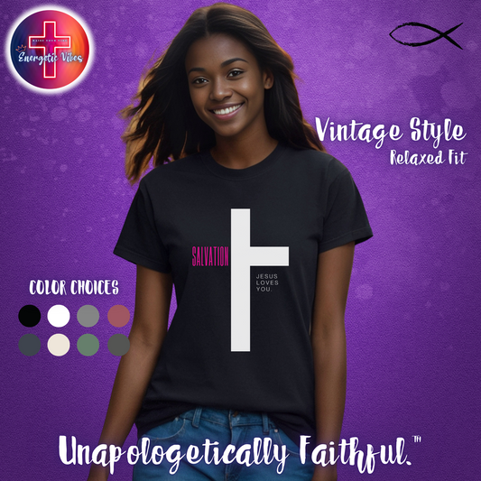 Salvation ~ Jesus Loves You Unisex Christian T-Shirt | Vintage Style Relaxed Tee
