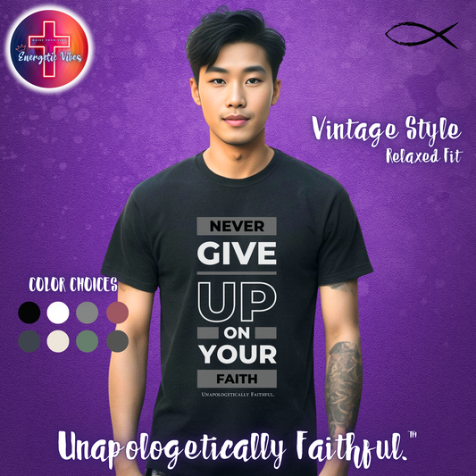 Never Give Up On Your Faith Unisex Christian T-Shirt | Vintage Style Relaxed Tee